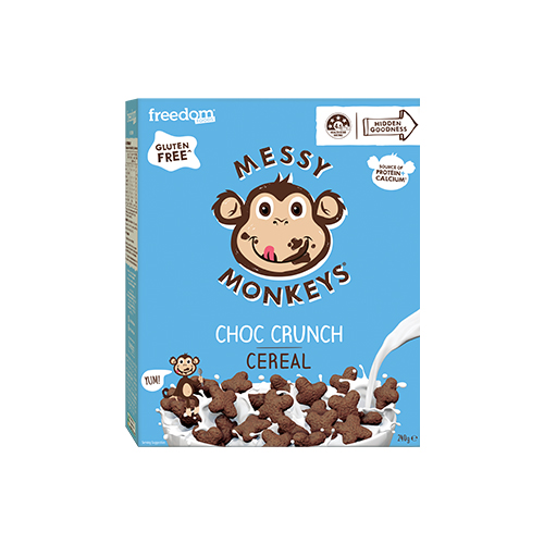 메시몽키 시리얼은 '좋은 것을 만들려면 직접 만들어야 한다'라는 사명으로 만든 어린이 건강 시리얼 입니다. 최고의 글루텐프리 테스트를 통과 했으며, 프로틴과 칼슘을 제공합니다. 또한 인공색소, 향료를 넣지 않은 시리얼로 귀여운 원숭이 캐릭터 패키지와 함께 호주 현지에서 많은 사랑을 받은 시리얼 입니다. 헬스 스타 레이팅 4.5로 건강한 시리얼로 인증 받은 바 있습니다. 초코 크런치는 건강한 초콜릿 맛의 시리얼 입니다.