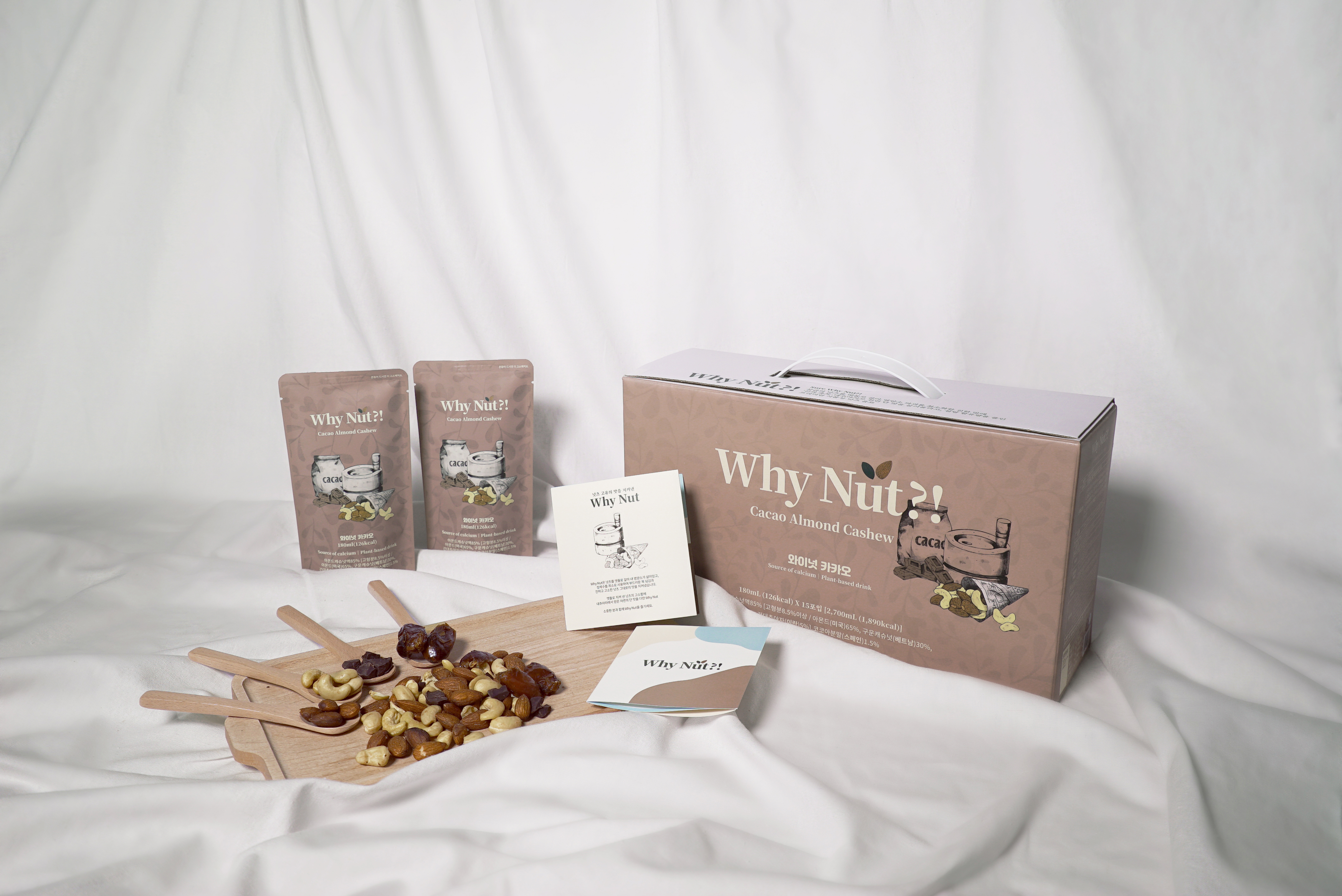전통 맷돌 방식으로 견과류를 통째로 갈아내 넛츠의 영양소가 살아있는 프리미엄 넛츠 음료 입니다. 정제수를 원물이 분리되지 않을 정도만 넣어 원물의 깊은 고소함을 그대로 지켜냈습니다. 대추야자를 사용하여 자연의 단맛을 적극 활용한 건강한 음료이며, 소화가 쉬워 유당불내증을 겪는 분들의 우유 대체 음료로도 활용 가능합니다. . Why Nut 카카오의 풍미를 더한 초코맛의 음료 입니다.